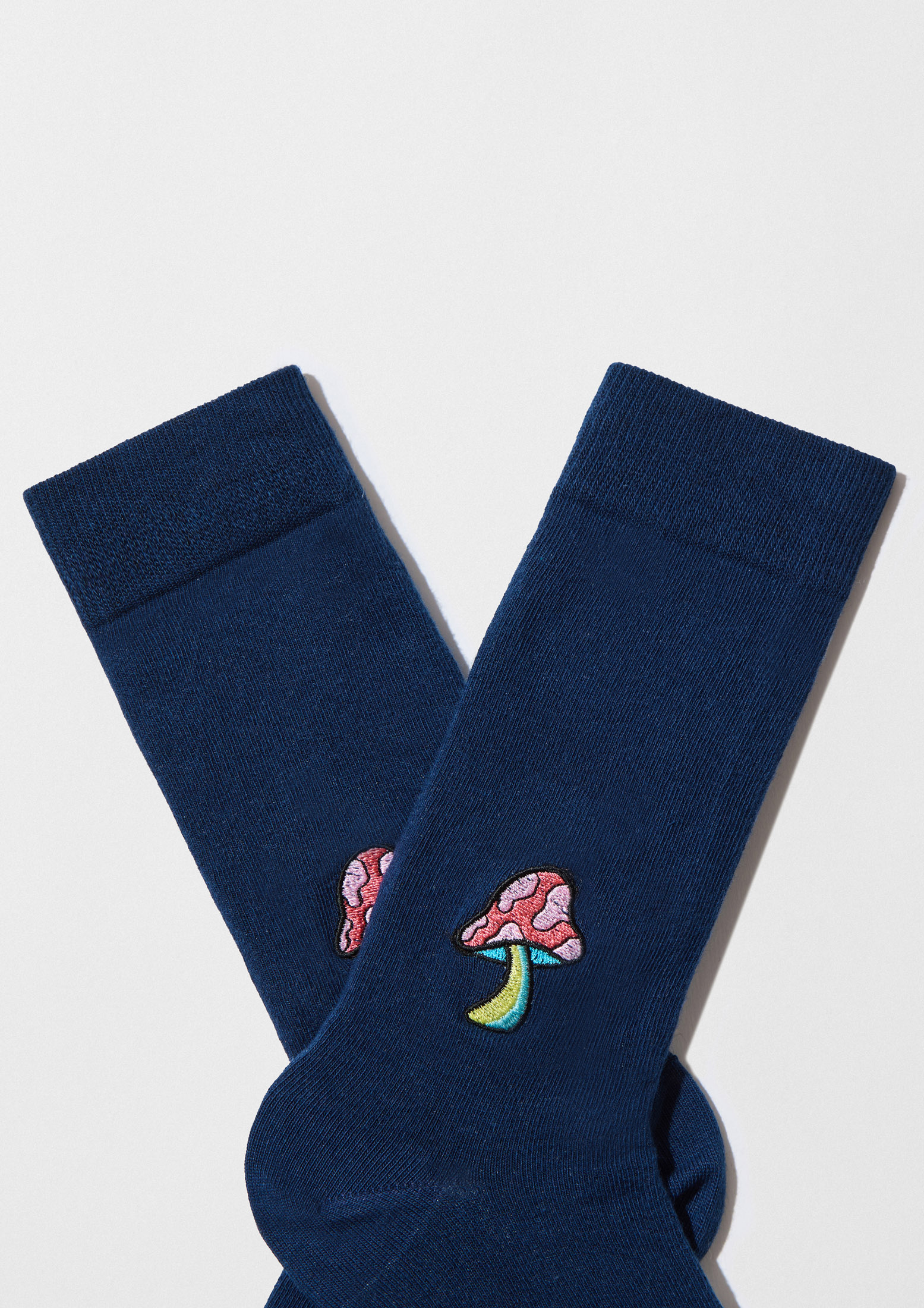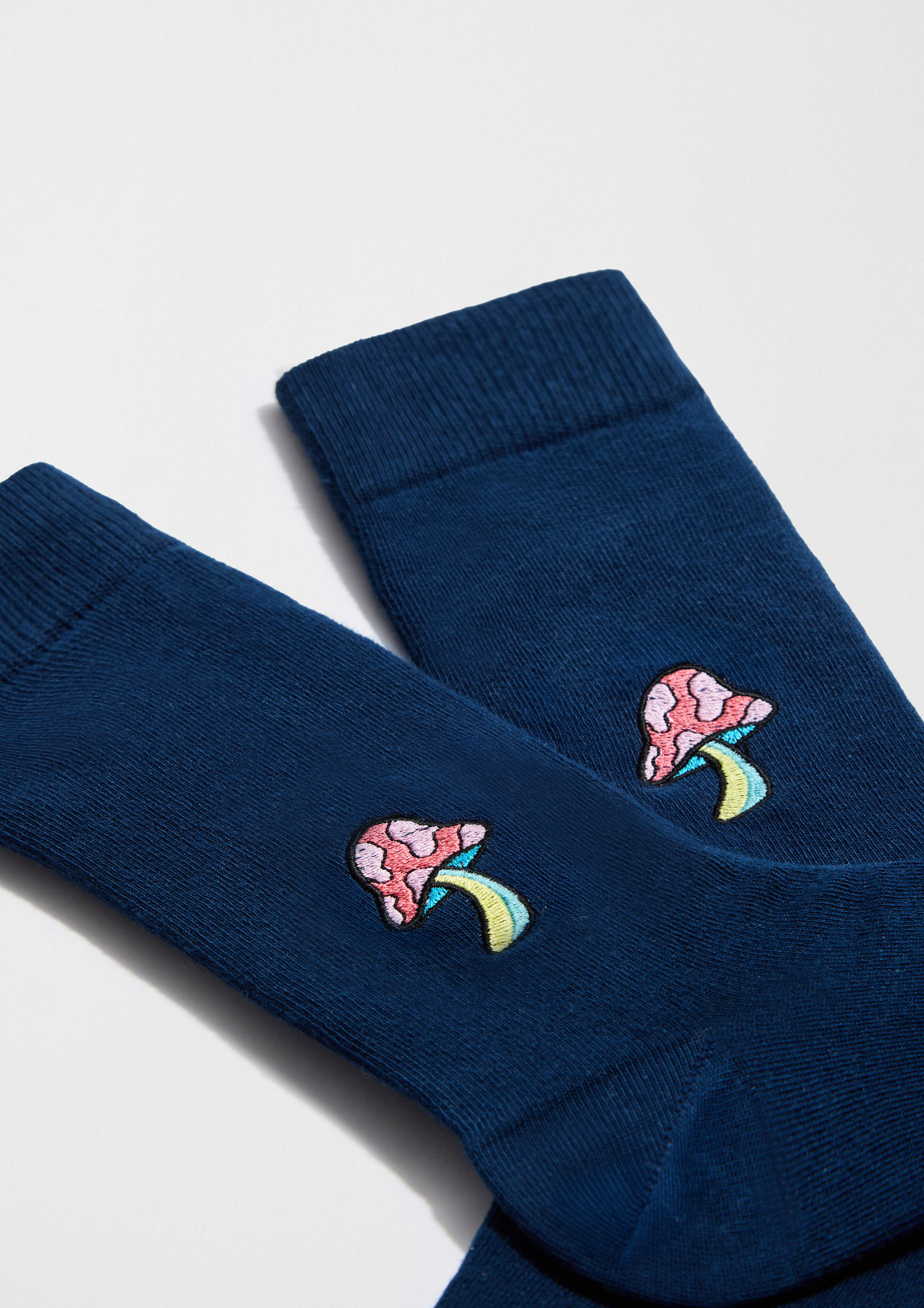 Divertidos calcetines de algodón orgánico con un bordado en el tobillo.